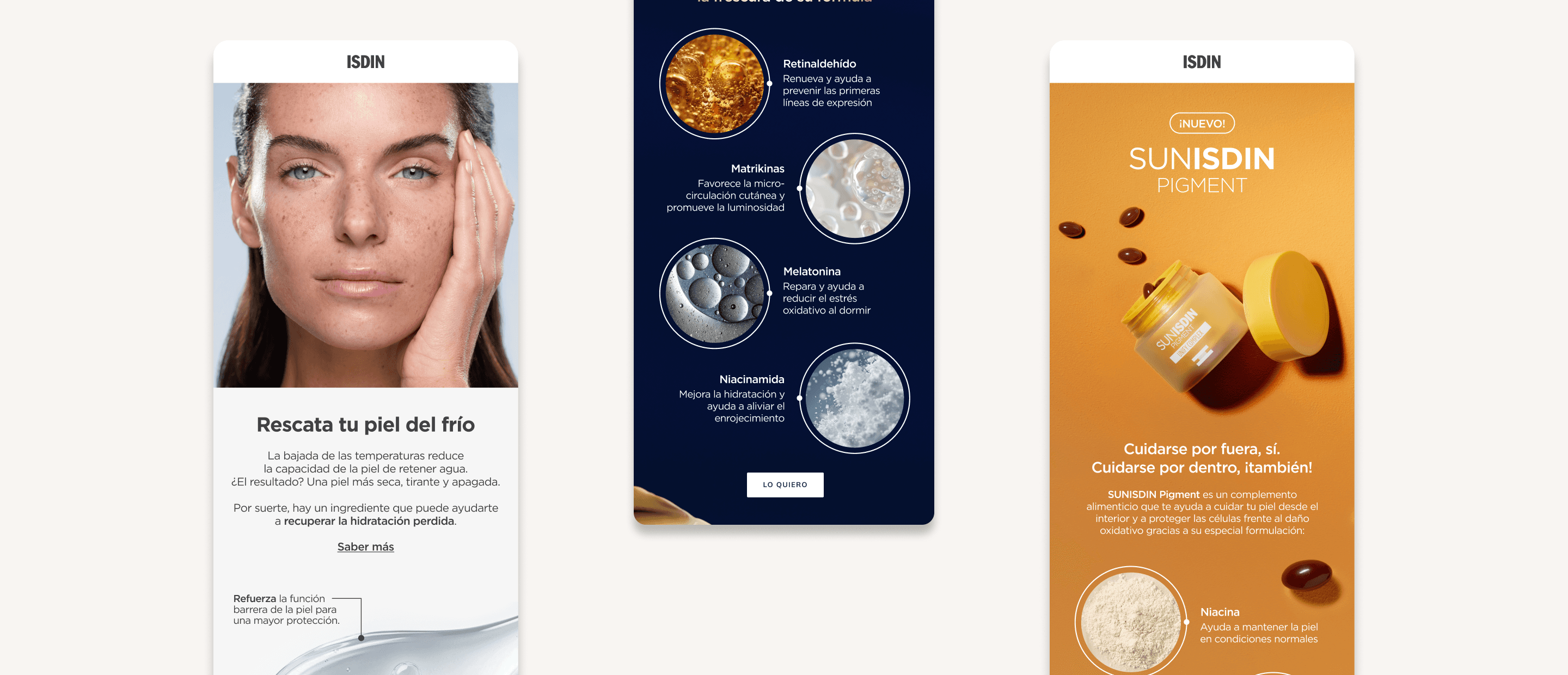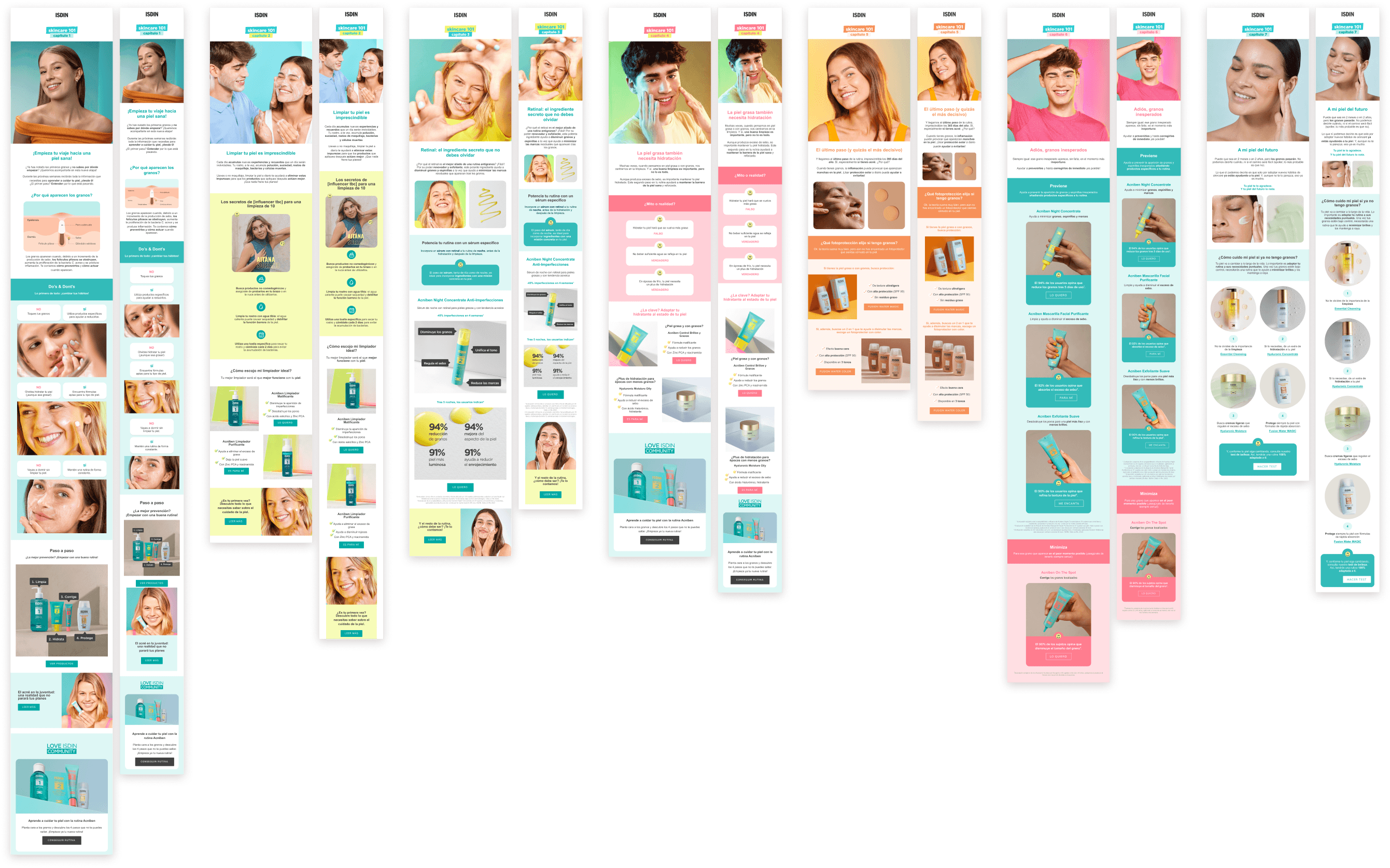 The work includes visually led product launch emails aligned with brand guidelines, as well as HTML-based consumer journey communications designed for responsiveness, accessibility, and cross-client compatibility. Each piece balances visual hierarchy, modular design, and technical constraints to ensure consistency across ISDIN’s email ecosystem.