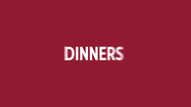 The elongated "D" helps create two readable blocks between "IS" and "DINNERS".